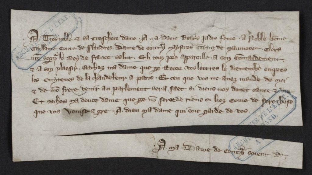 Het merendeel van de documenten in de grafelijke collectie is van administratieve en juridische aard. Slechts hier en daar vangen we een glimp op van persoonlijke beweegredenen en individuele stemmen. Zogenoemde “egodocumenten” zijn voor de middeleeuwen eerder zeldzaam. Er zijn enkele brieven bewaard gebleven die als persoonlijke correspondentie gericht aan de gravin beschouwd kunnen worden.