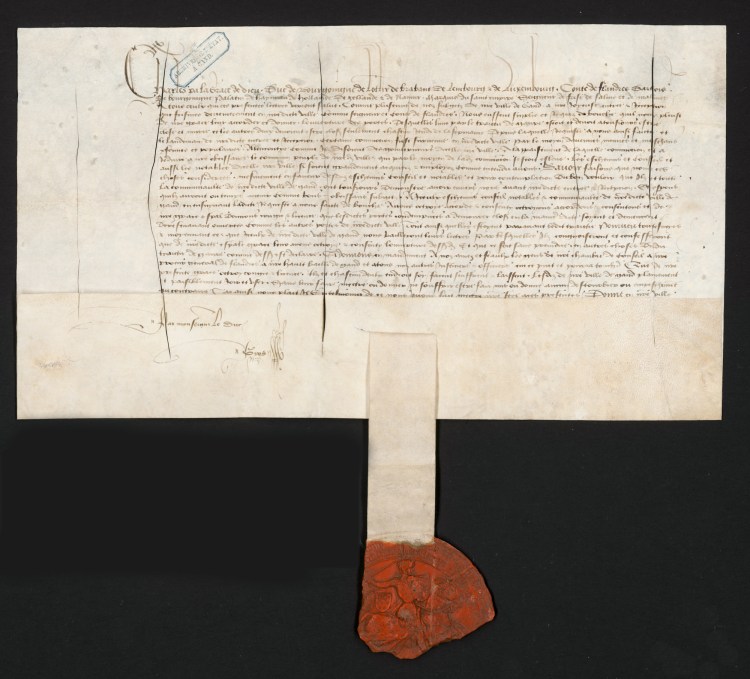 Wanneer in 1467 de nieuwe Bourgondische hertog Karel de Stoute voor zijn Blijde Intrede een bezoek brengt aan Gent, wil hij graag met een propere lei starten. Toch breekt al snel ongenoegen uit wegens het ongelukkig samenvallen van het hertogelijk bezoek met de processie en viering van de lokale heilige Lievinus. Deze religieuze optocht had de reputatie een drinkgelag te zijn die wel eens uit de hand durfde te lopen. Op 28 juli worden de plooien gladgestreken en op verzoek van de schepenbanken en de notabelen van de stad Gent geeft Karel de Stoute de toelating om de stadspoorten, die sinds het verdrag van Gavere gesloten waren, terug in gebruik te nemen. In de oorkonde van 28 juli 1467, die bewaard wordt in het Gentse Rijksarchief, wordt verwezen naar de commotie en ongeregeldheden die in de weken voordien in de stad had plaatsgevonden. Het stuk draagt het zegel van Karel de Stoute.