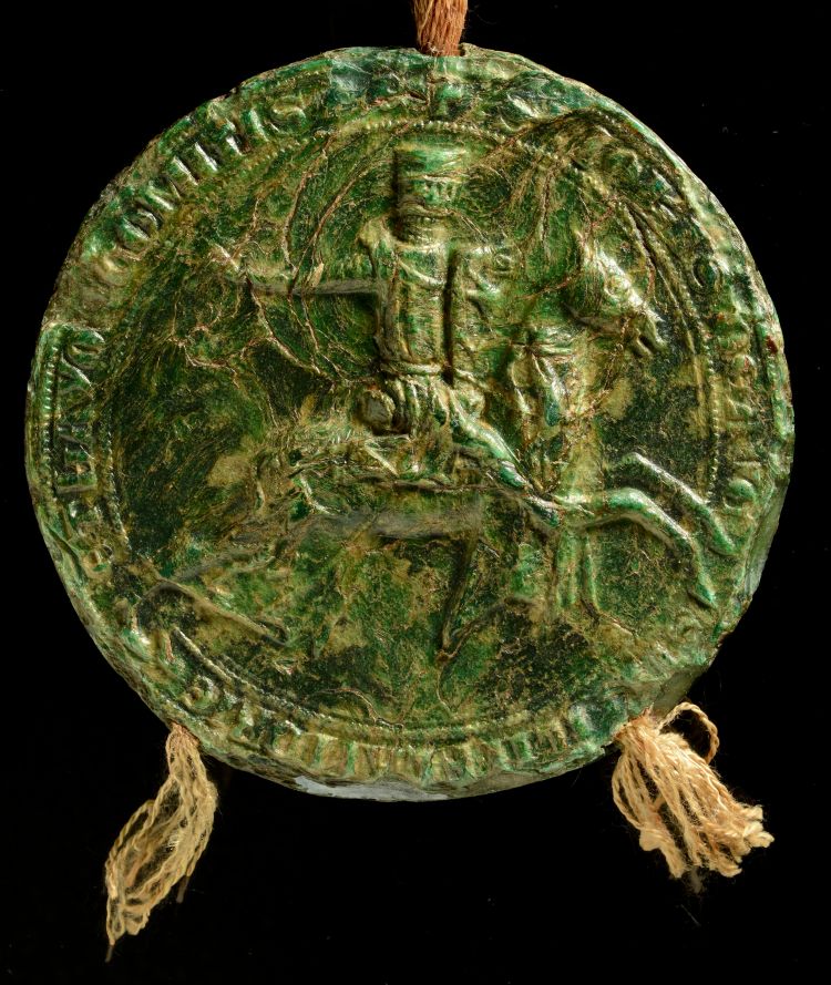 1. De opvolgingsstrijd tussen de kinderen uit het eerste en tweede huwelijk van gravin Margareta van Constantinopel (beluister aflevering 6) heeft tot de uitvaardiging van heel wat oorkonden geleid. In een oorkonde uit 1257 verklaren Jan en Boudewijn van Avesnes zich te onderwerpen aan de uitspraak van de Franse koning en af te zien van hun aanspraken op Zeeland en enige andere lenen. Deze plechtige oorkonde met twee ruiterzegels in groene was werd in vier originelen uitgevaardigd. Hiermee was echter het laatste woord over de opvolging van Margareta nog lang niet gezegd…