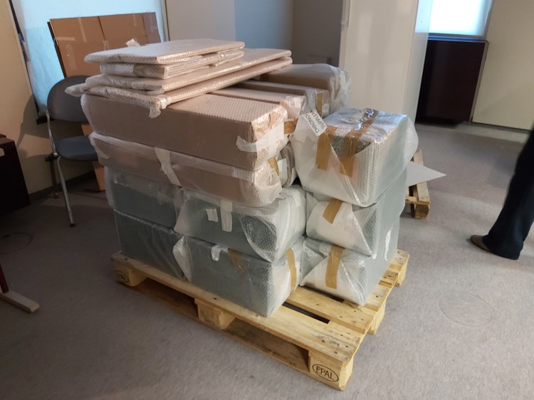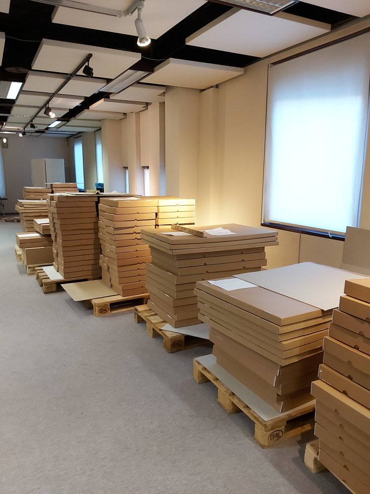 Zoals we eerder al berichtten, vertrokken in januari 2019 de oorkonden uit de reeksen Saint-Genois en Oostenrijks Fonds voor behandeling naar Nederland. Vorig jaar rond deze tijd brachten we ze een bezoekje ter plaatse en nu kunnen we met trots aankondigen dat ze weer thuis zijn! Eenmaal gevlakt, gereinigd en gemonteerd hebben de stukken een heel ander volume gekregen: ze zijn vertrokken op één palet en teruggekeerd op niet minder dan twaalf paletten! Ook logistiek zal dit huzarenstukje dus gevolgen hebben: in het depot van Gent wordt deze zomer met de hulp van jobstudenten ruimte vrijgemaakt, om de stukken in de allerbeste omstandigheden te bewaren. Voor de raadpleging is het nog even geduld oefenen: de volgende stap is nu digitalisering in het atelier van het Algemeen Rijksarchief, waar de charters volgens de regels van de kunst zullen worden gereproduceerd om in een volgend stadium digitaal ter beschikking te worden gesteld.