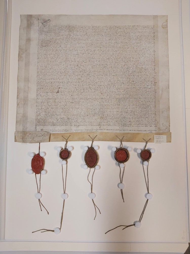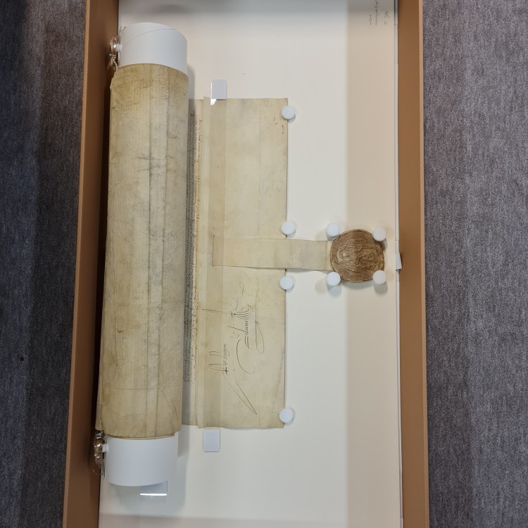 Eerst even recapituleren: dankzij de steun van het Fonds Baillet-Latour kon het Rijksarchief Gent in 2019 een bijzonder ambitieus project aanvatten: de restauratie van de oorkondenschat van de Graven van Vlaanderen, goed voor de reiniging, conservatie, herverpakking en indien nodig restauratie van meer dan 4000 documenten. De vier reeksen uit de “chartrier” werden in drie loten opgesplitst, die afwisselend voor behandeling naar Nederland vertrokken. Eerder berichtten we al over de terugkeer van de reeksen “Saint-Genois” en “Oostenrijks Fonds” (lot 1) en die van de reeks “Gaillard” (lot 2). Sinds 19 oktober 2021 is ook het derde en laatste lot, de reeks “Chronologisch supplement” terug op Belgische bodem. Net zoals de andere reeksen zal ook dit lot deskundig worden ingescand door Nathalie, Marie en Claudine, de dames van het digitaliseringsatelier van het Algemeen Rijksarchief en worden de zegels nauwkeurig en in hoge resolutie gefotografeerd door Bart, onze huisfotograaf. De charters zijn dus nog niet helemaal terug “thuis” in Gent, maar ze komen er aan!