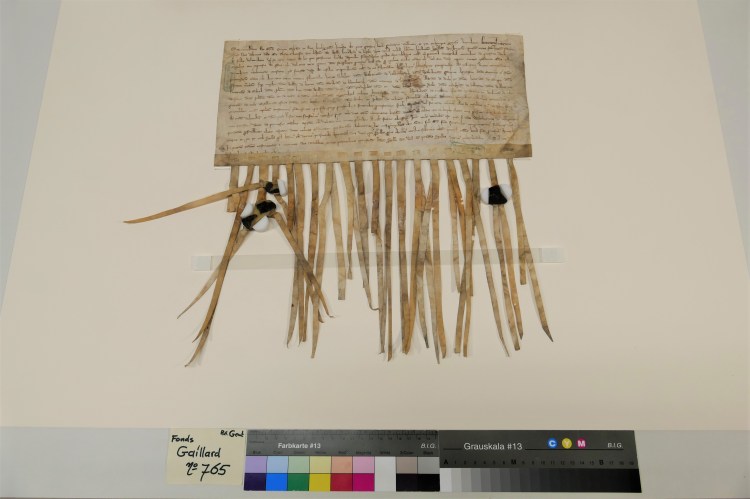 En het resultaat mag er zijn! Met dank aan de afdeling DiVa werden alle charters intussen ook volgens de regels van de kunst gescand of gefotografeerd. Momenteel worden voorbereidingen getroffen voor de realisatie van een nieuwe, verbeterde toegang op de vier bestaande reeksen charters, namelijk de Saint-Genois, Gaillard, Oostenrijks Fonds en Chronologisch Supplement. Geen geringe opdracht, maar wel één die het mogelijk moet maken de hele collectie volledig online te doorzoeken en bekijken. Op die manier zullen de Graven en Gravinnen van Vlaanderen op termijn ook in de huiskamer van onze bezoekers hun “blijde intrede” kunnen maken.